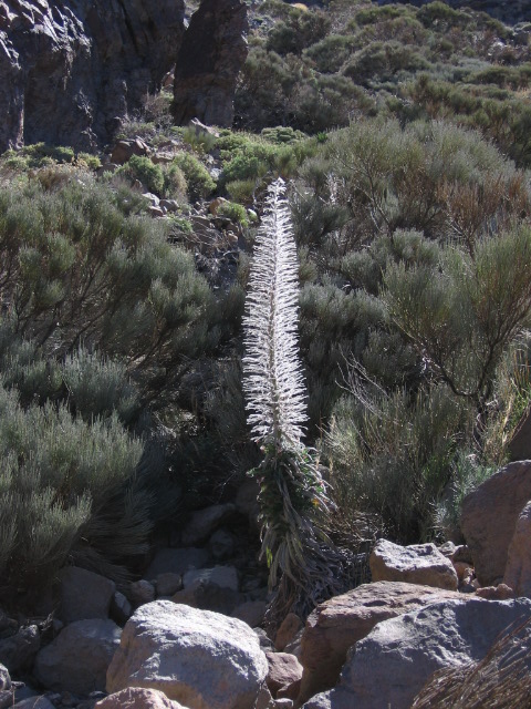 | Cloud sea spills over caldera rim | Dried Tajinaste |